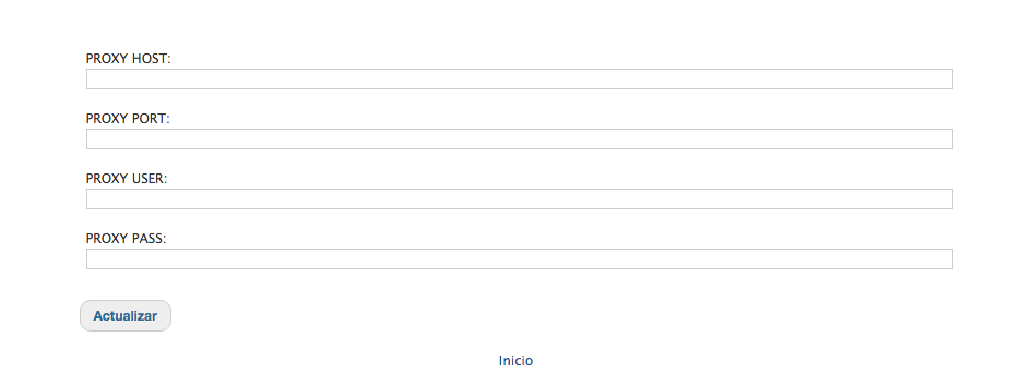 En caso de usar proxy para la salida a internet en esta sección se podrá especificar la configuración que corresponda.