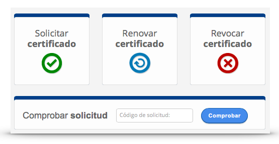 El ciclo habitual de una solicitud de certificados comienza en la parte pública de la RA, mediante el acceso de un usuario final (subscriptor) al formulario de solicitud del tipo de certificado que desee adquirir.